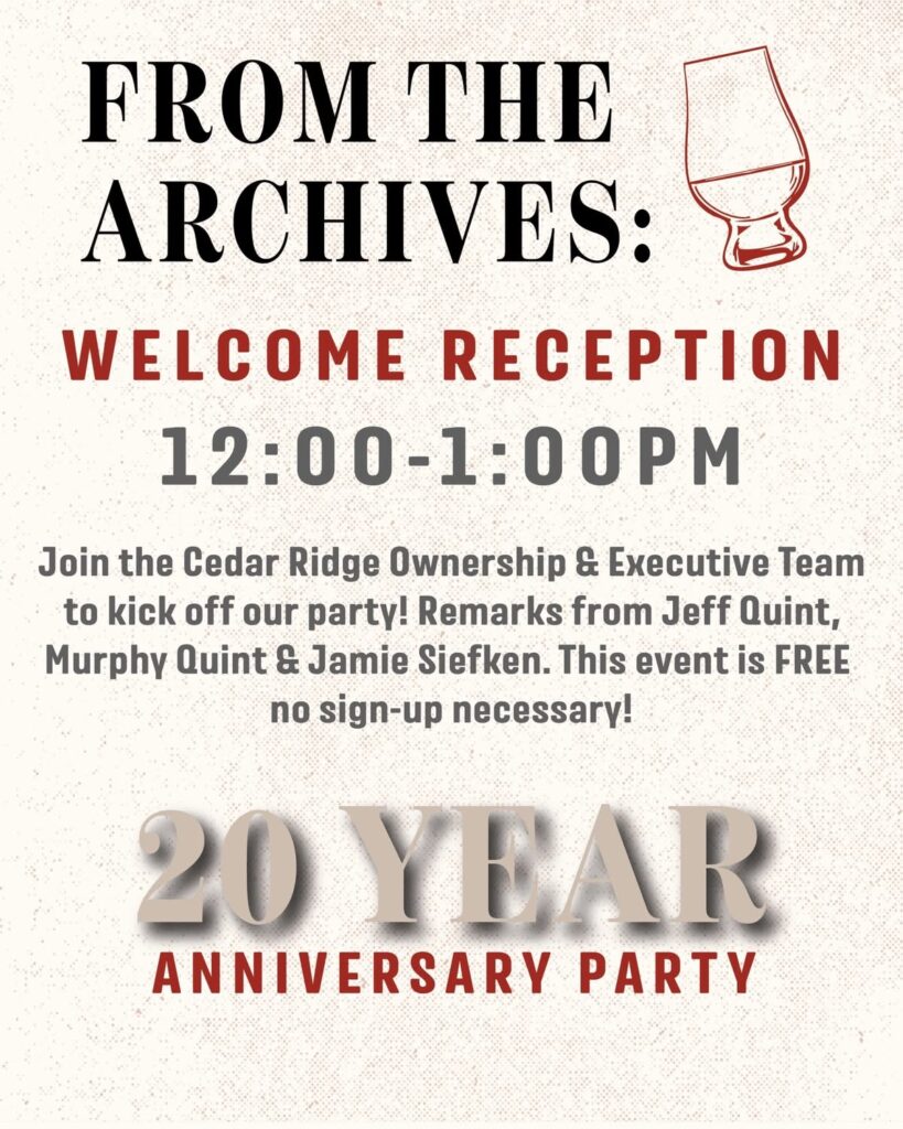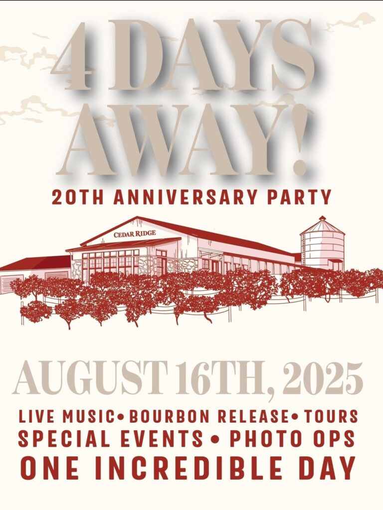 Yes, that’s right… Cedar Ridge is throwing a party for their 20th anniversary. The event will feature live music, tours, special events, photo opportunities, and a special bourbon release. There will also be a pop-up for tattoos… so what are you waiting for!?