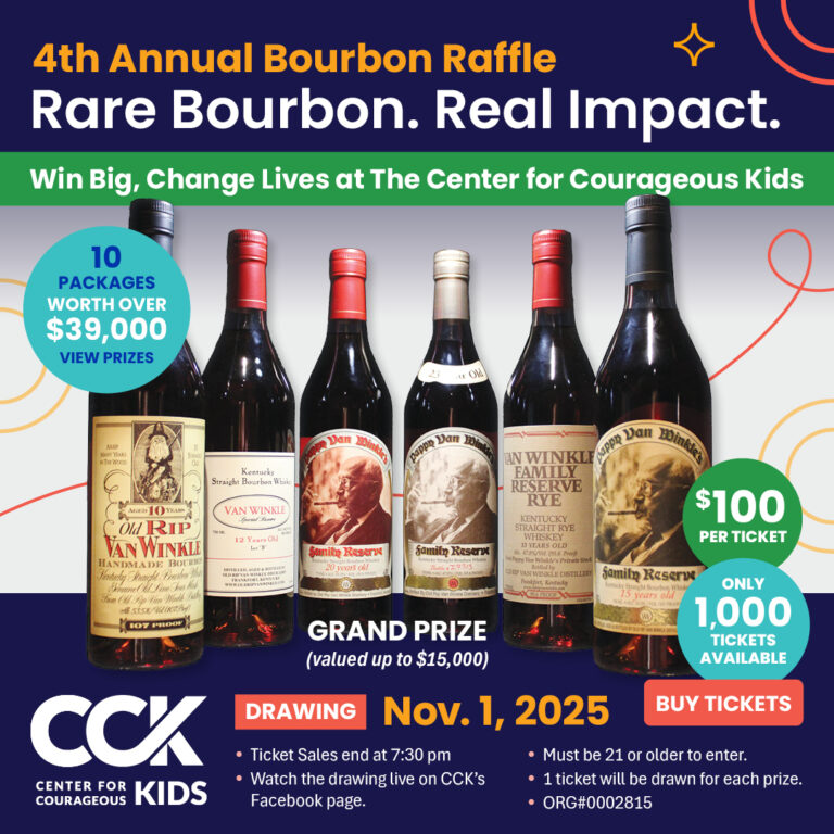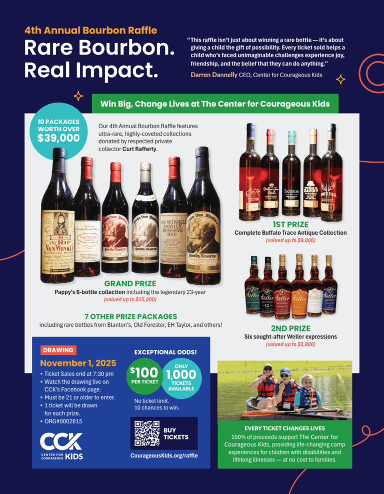 It’s time once again to put on your bourbon philanthrophy hat and buy some raffle tickets for a special cause. Our good friends at The Center for Courageous Kids (CCK) in Scottsville, Kentucky, are having their fourth annual raffle of “ultra rare, highly-coveted bourbon bottles.” What makes this raffle so special (besides the unbelievable bourbon that you can win)? CCK said, “Every ticket sold is a step toward transforming the lives of children with disabilities and lifelong illnesses, funding magical and unforgettable camp experiences all at no cost to their families.”