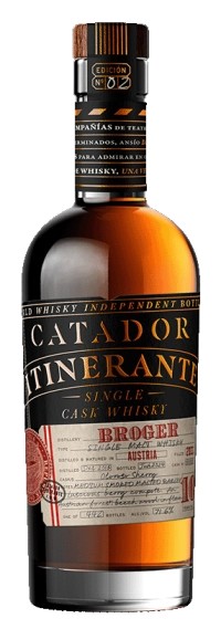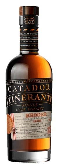 The first Catador Itinerante release is an unpeated Austrian single malt aged in virgin French Limousin oak and Madeira casks. The whisky is a deep color with a nose of raisins, burnt brown sugar, moss, figs, and candied orange. Initially the whisky tastes of dark chocolate, cabernet, and plum on top of a velvety mouthfeel before the 62.1% ABV delivers some heat mid palate. The long finish brings back the dark chocolate but with a bit more cocoa flavor. Adding water increases the orange on the nose, with the palate becoming fruitier and spicier.