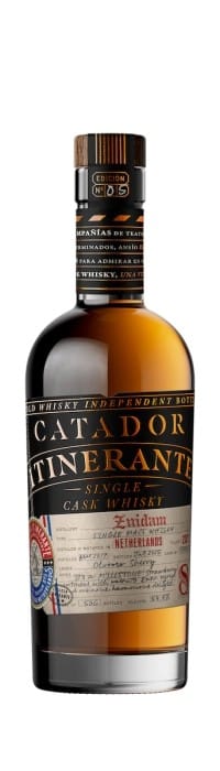 Catador Itinerante’s latest two releases come from Dutch distillery Zuidam. The ochre-hued 8-year Edition 05 single malt was aged in 1st fill Oloroso Sherry casks and bottled at 54.4%. Redolent of brandy, bread, and nectarine, the palate offers up black cherry and rich wine notes before giving way to burnt orange and sugar and a medium length finish of raisins. Water adds green apple to the nose and accentuates the dark berry flavors.