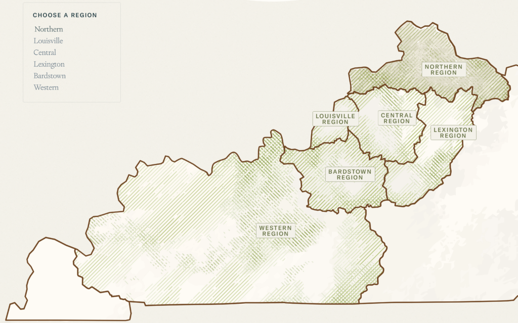 The Kentucky Bourbon Trail divides the Commonwealth in six geographic regions. (Photo credit: Kentucky Bourbon Trail)